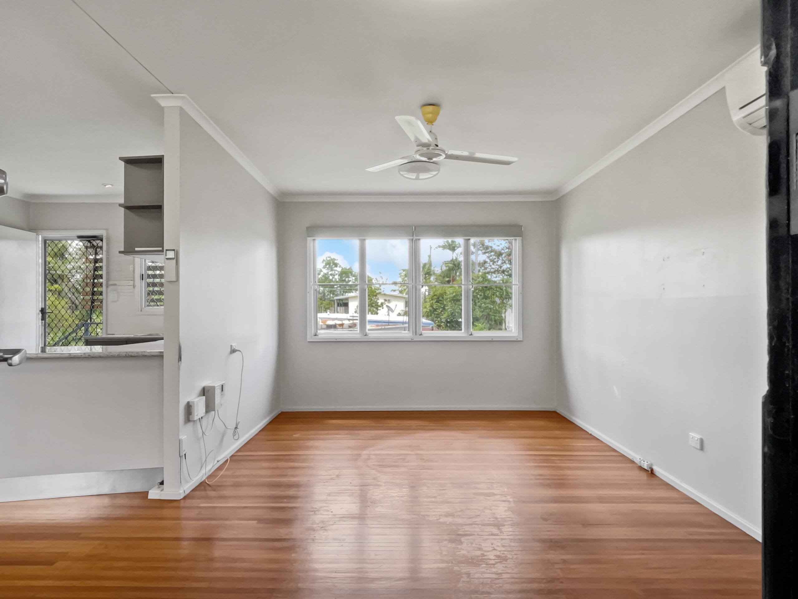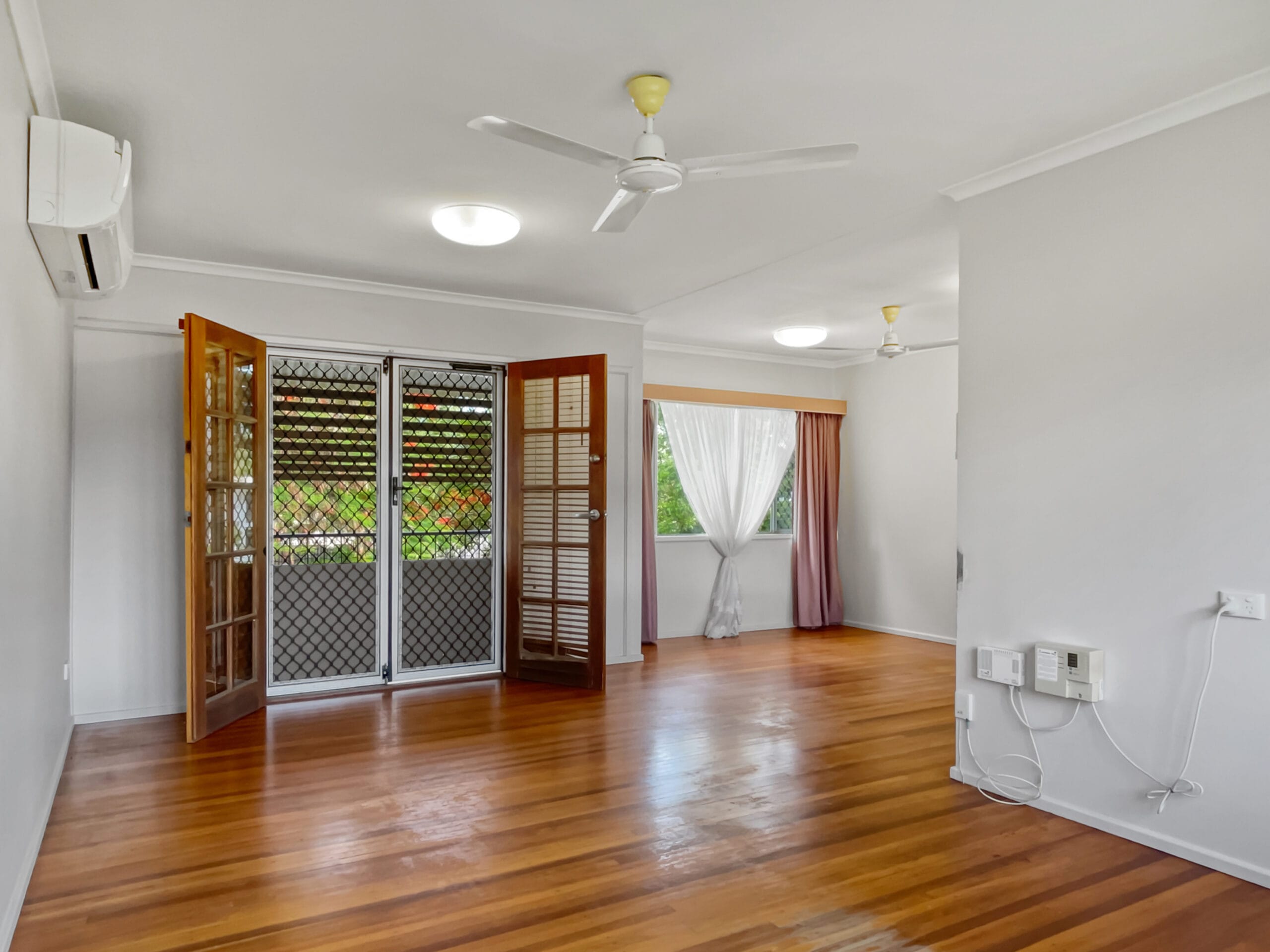 Generous living room with split system air conditioner,