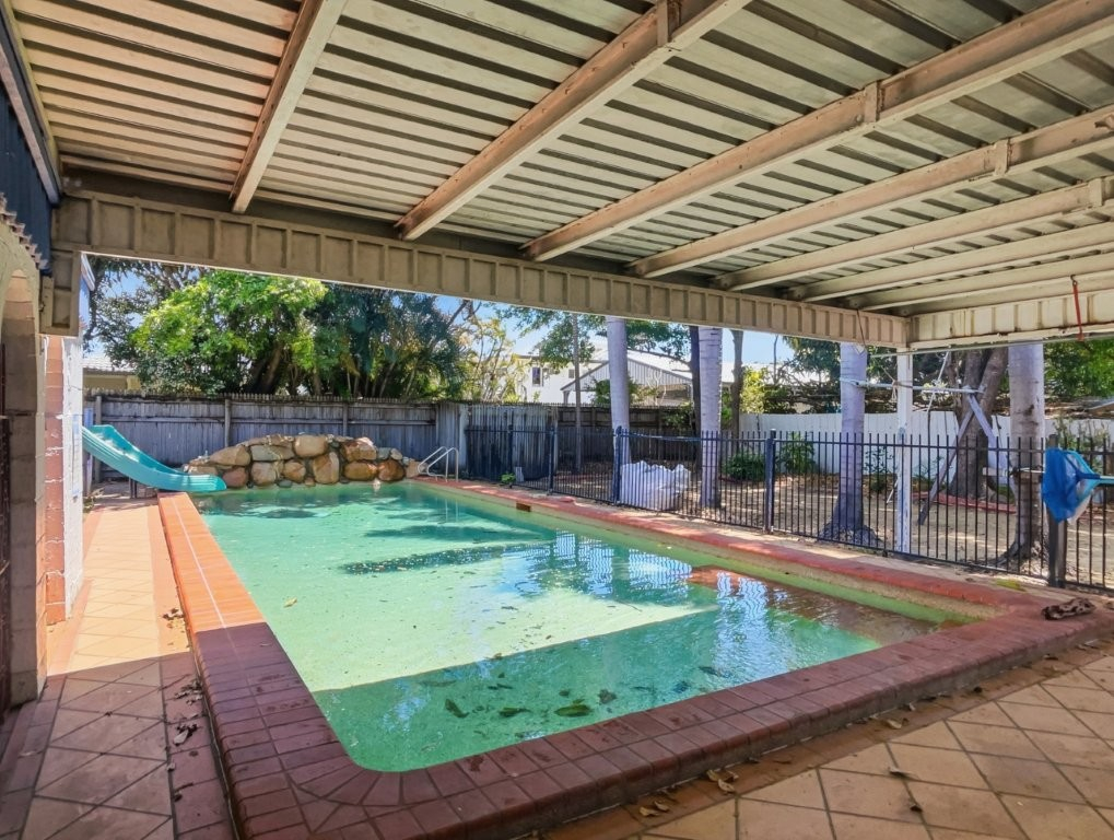 Certainly an architecturally significant grand home in its day with an entertainers style pool area. Built in an Iconic split level style, the home has 4 bedrooms and main bathroom on the upper level, mid level has the kitchen / dining & family room and on the ground level a 2nd full bathroom and huge family lounge room. The family lounge extends out to the fully covered entertainers area with built in BBQ & range. This are over looks the inground pool and rear garden. Adjacent to the home is the long driveway and double under cover car accommodation, which has roller door access.
